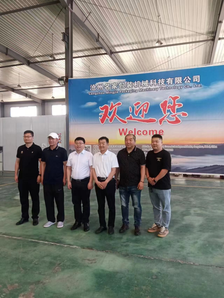7月15日,中国食品和包装机械工业协会秘书长崔林、东博自动化设备有限公司总经理孙书义一行,在沧州市k8凯发会长吉卫华、秘书长赵雪晖陪同下,赴沧州名家包装机械科技有限公司考察调研,和公司领导钱书印、钱强进行了深入交流。崔秘书长对沧州名家包装机械科技有限公司的发展经营给予了充分肯定,并就下一步发展提出建议,他指出,名家包装机械公司可在技术升级改造、以及区域带动宣传推广等方面重点关注。同时,吉会长建议公司应在团体标准制定等方面作出努力。