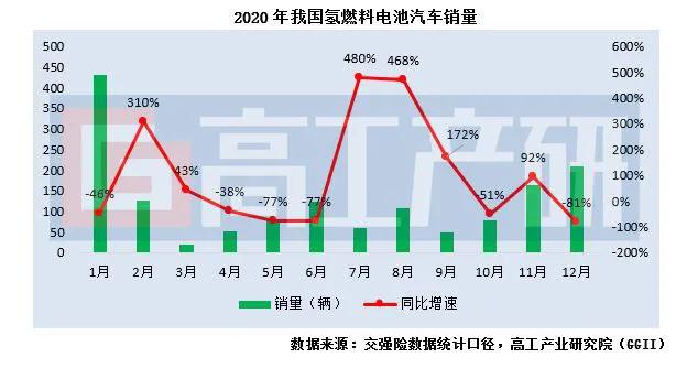 通过高工产业研究院(GGII)发布的《燃料电池汽车月度数据库》统计显示,2020年我国氢燃料电池汽车销量为1,497辆,同比下降53%。其中,氢燃料电池客车销量为1,351辆,同比增长15%;氢燃料电池专用车销量为146辆,同比下降93%。